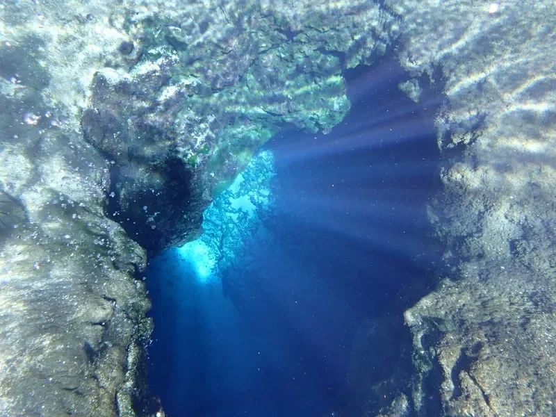 Photo looking down into Blue Hole cave from the surface - from https://www.floridastateparks.org/learn/snorkel-blue-hole