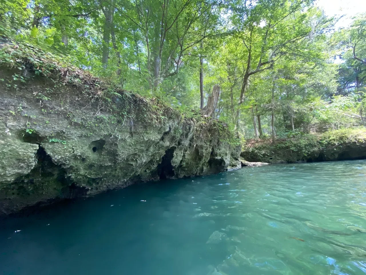 Be aware: There is no place to stand in this swimming hole. With no man-made infrastructure other than a wooden deck for divers to stage their gear, this spring is not for the wilderness faint-of-heart. We watched a beautiful banded water snake (non-venomous) hanging out unassumingly by the steps leading into the water the whole time we were there last time. It didn’t mind us one bit and we didn’t mind him either. Hubby and his brother and sister-in-law went in to explore, and even took our 6-year-old… who loved every minute!! I sat this one out as my teeth were already chattering, but after reviewing the photos and video they got underwater, I was so sad I missed it. No wonder it’s so popular with divers.. It’s GORGEOUS under there.  Check out the video below that our friend George made of our group swimming in Blue Hole.