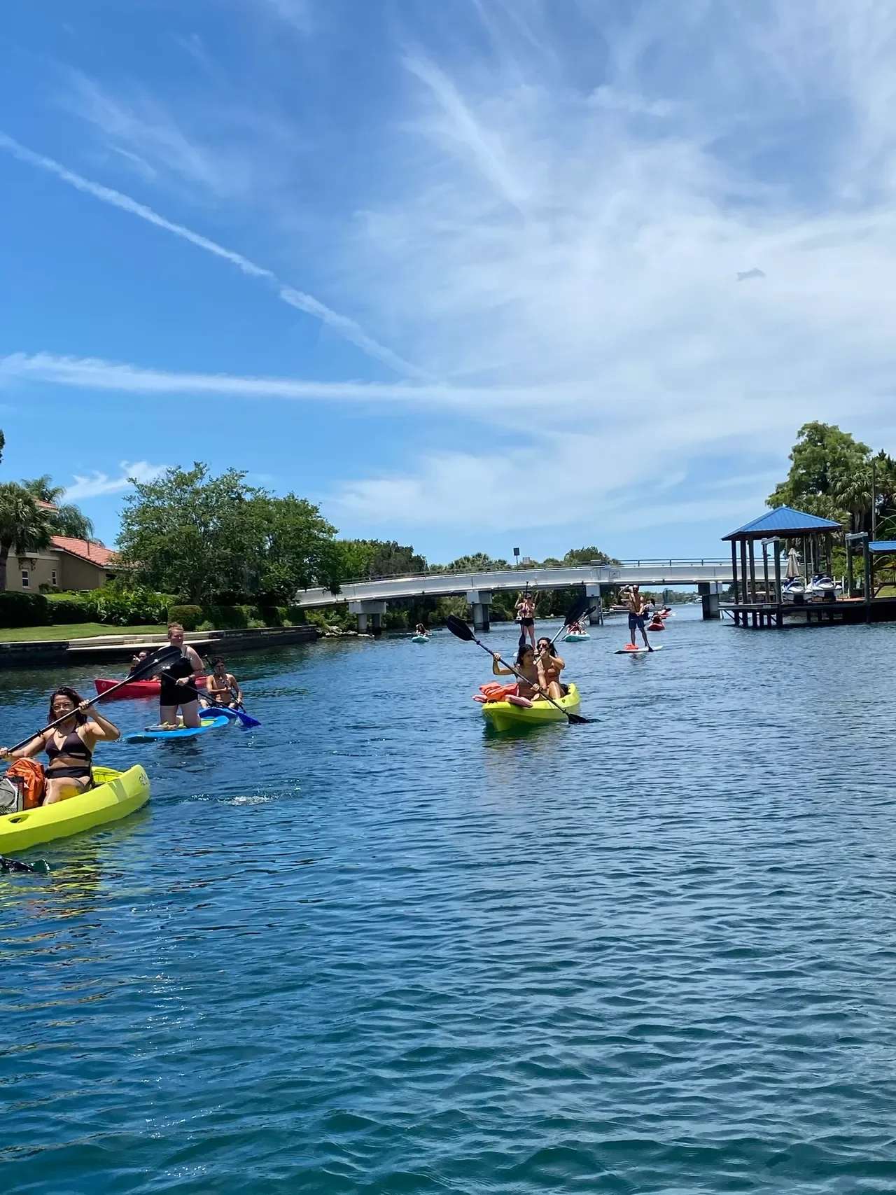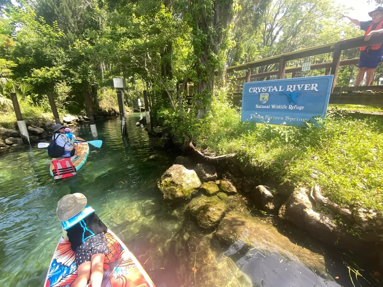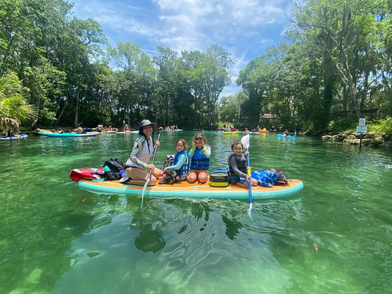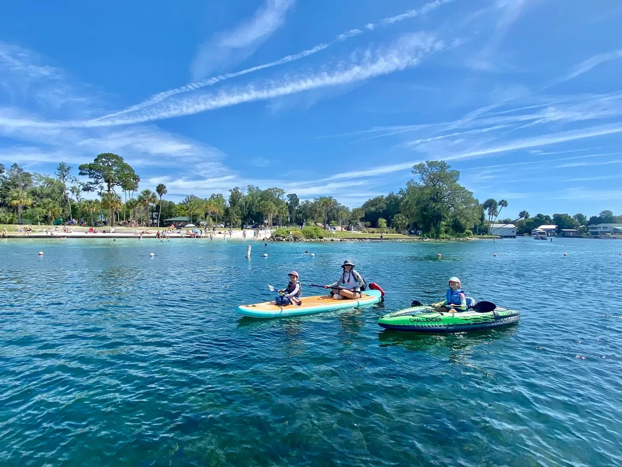 Loads of kayakers and paddleboarders heading towards Three Sisters Springs